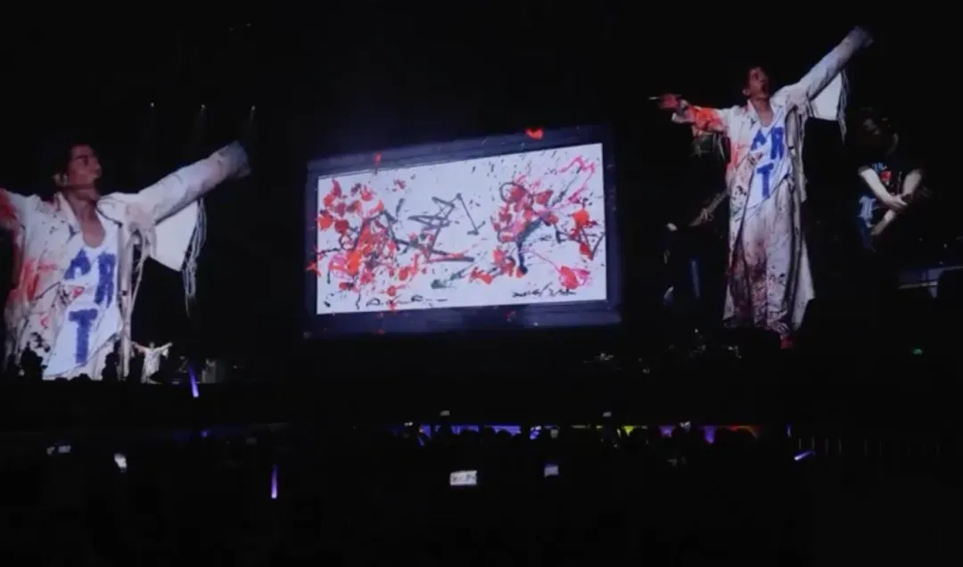 演唱会现场,郭富城一边唱歌一边泼墨作画,短短几分钟一朵朵木棉花跃然纸上,用一幅画向广州表白。